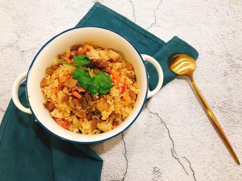 去过新疆旅游,对那边记忆深刻的不仅是独特的异域风景还有那让人魂牵梦的美食。这款羊肉手抓饭就属于其中,不能每次“跋山涉水”去新疆品尝,在家也能做出同样的味道,肉质鲜美多汁的羊肉再搭配葡萄干、坚果、藏红花,口感丰富、美味营养。这道食物做法简单,仅仅只用一个锅具,就能做出主食肉蔬菜皆有的美食。