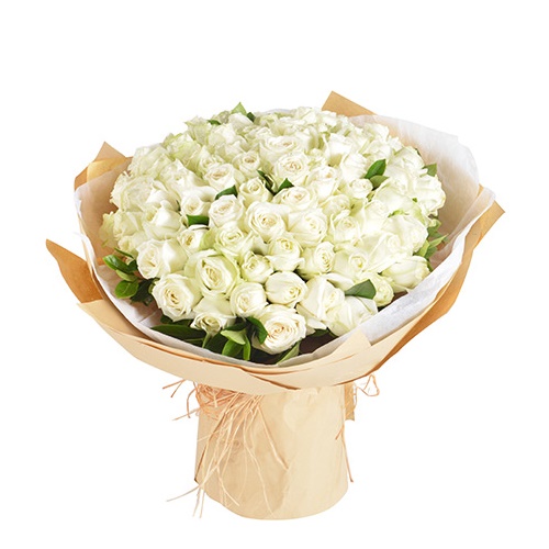 白玫瑰99枝,栀子叶适量