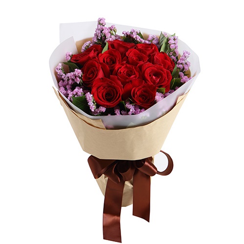 玫瑰11枝,粉色勿忘我0.3扎