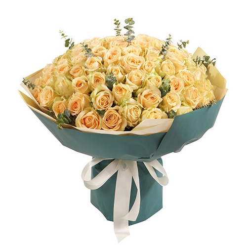 香槟玫瑰99枝,尤加利适量