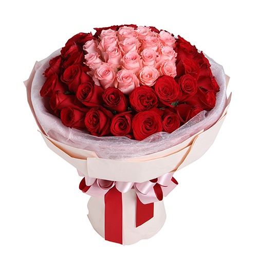 玫瑰50枝:戴安娜粉玫瑰19枝,红玫瑰31枝