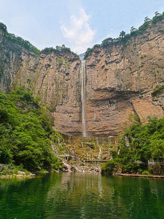 龙潭大峡谷景区位于洛阳市新安县北部,距洛阳60公里,郑州180公里,连霍高速、310国道、陇海铁路横穿县境,位置优越,交通便利。是国家5A级景区,国家地质公园,是洛阳黛眉山世界地质公园的核心景区,是一条以典型的红岩嶂谷群地质地貌景观为主的峡谷景区。洛阳龙潭大峡谷景区谷内关峡相望,潭瀑联珠,壁立万仞,峡秀谷幽,经过十二亿年的地质沉积和260万年的水流切割旋蚀所形成的高峡瓮谷、山崩地裂奇观,堪称世界一绝,人间少有,享有"中国嶂谷第一峡"、"古海洋天然博物馆"、"峡谷绝品"和"黄河水画廊"等美名。