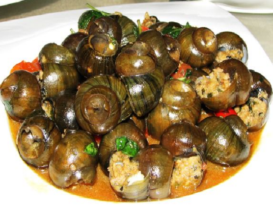 田螺酿是桂林的一道美食,阳朔的田螺非常特别。首先是大,最大的差不多有乒乓球大小了;其次是它的味道,完全不像螺肉本身的味道。