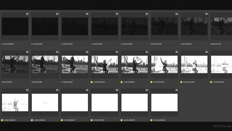 摄影师Bill Lawson想要测试一下胶片和数码相机的动态范围的区别,在同样的场景,同样的画面,分别使用胶片相机和数码相机从 -10 档曝光到 +10 档曝光,拍摄了 21 张照片作为比较。同样的感光度,同样的光圈,同样的快门,得到的结果却是截然不同的。