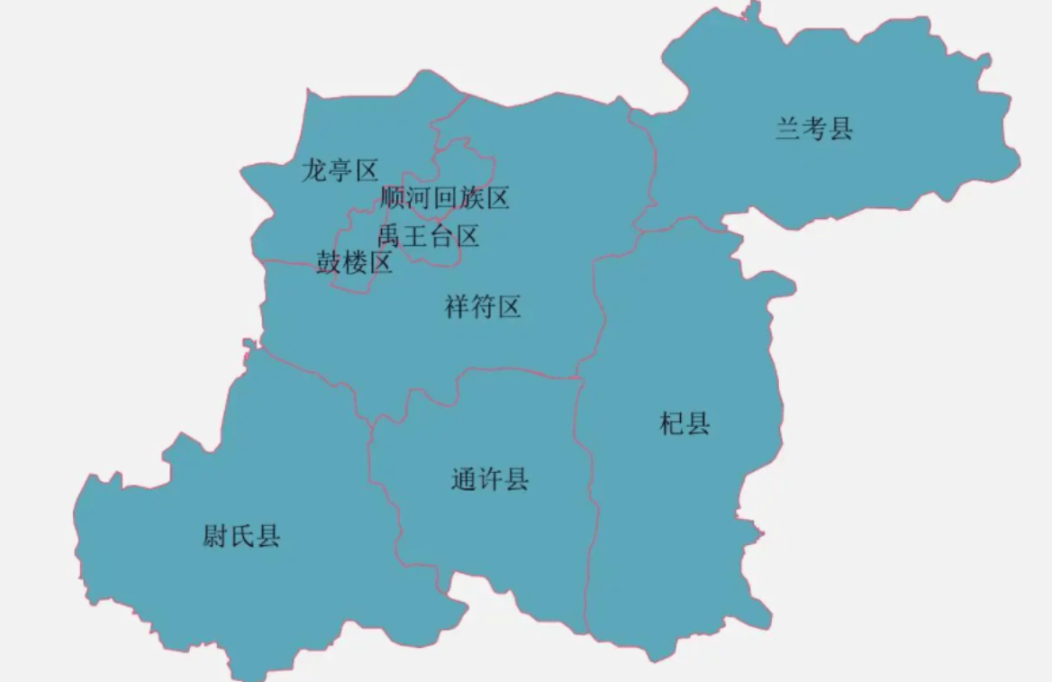 开封现辖杞县、通许县、尉氏县、兰考县4县,龙亭区、城乡一体化示范区、顺河回族区、鼓楼区、禹王台区、祥符区6区