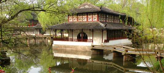 拙政园位于古城苏州东北隅(东北街178号),是苏州现存最大的古典园林,占地78亩(约合5.2公顷)。全园以水为中心,山水萦绕,厅榭精美,花木繁茂,充满诗情画意,具有浓郁的江南水乡特色。花园分为东、中、西三部分,东花园开阔疏朗,中花园是全园精华所在,西花园建筑精美,各具特色。园南为住宅区,体现典型江南民居多进的格局。园南还建有苏州园林博物馆,是国内唯一的园林专题博物馆。