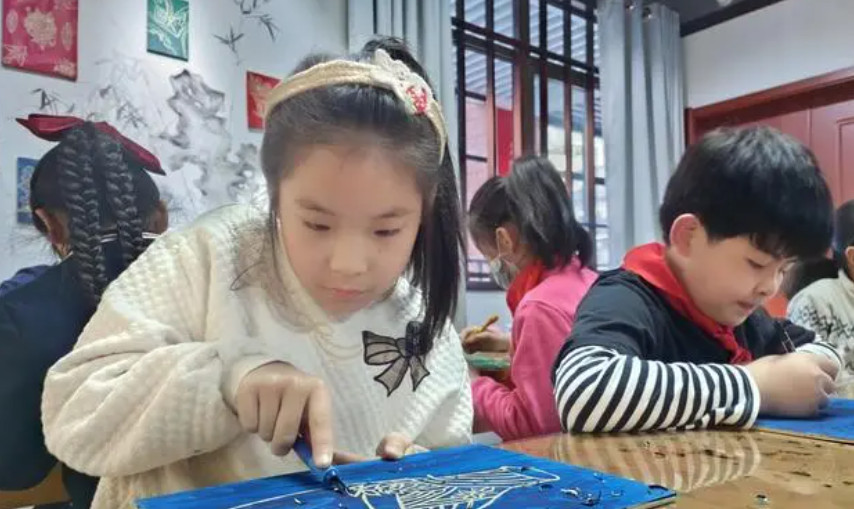 木刻勾勒“青花瓷”,小学生在一刻一凿中走进中国国粹