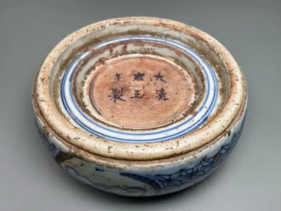 清雍正青花锦地开光杂宝纹圆瓷砚清雍正青花锦地开光杂宝纹圆瓷砚,直径12.5厘米,高4厘米。砚面下凹,光滑细腻,边缘口沿凸起。砚槽未施釉。鼓腹,顶部也有口沿一圈。腹部绘青花锦地纹饰并开光绘对称杂宝四件,奇怪的是青花釉色明显有浓有淡,也许是绘制时前后釉色不均的问题。砚台底部有圈足,可见胎土细腻滋润,属于上好的“糯米胎”。内为二层台式底,中间层施釉并绘有三圈青花纹饰,底层为青花双圈并楷书款“大清雍正年制”,书写十分规范。