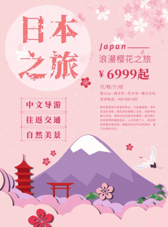 3.着装:准备衣物要根据季节的变化而定, 日本气候冬季平均5摄氏度,夏季平均为 9摄氏度,早晚温度相差约10度,游客的旅行着装应以轻便舒适为主。