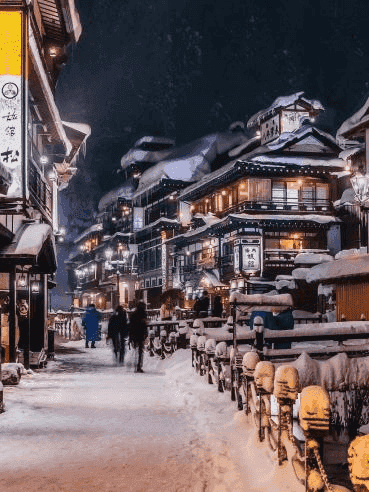 银山温泉位于日本山形县东北部尾花泽市,是一个具有浓厚日本传统风情的温泉疗养胜地。