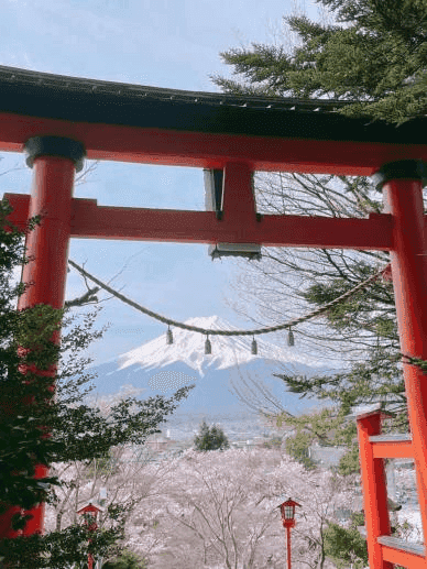 :富士山,位于日本本州岛中南部,东距东京约80千米,跨越在日本静冈县与山梨县之间。富士山是日本精神、文化的经典象征之一,在日本人的心中是一座蕴含着自然魅力,优美、庄严的神山。