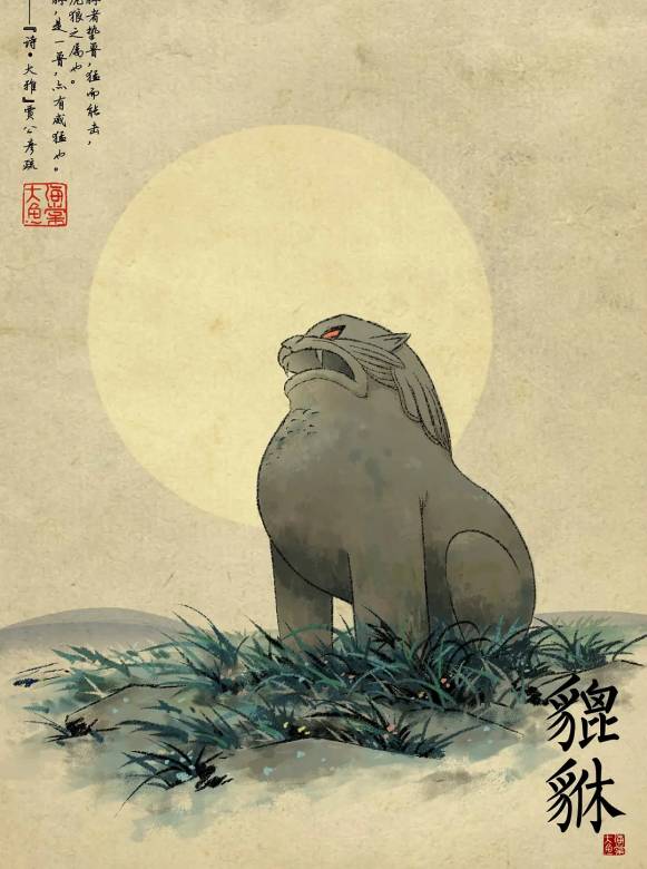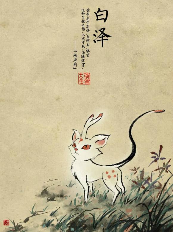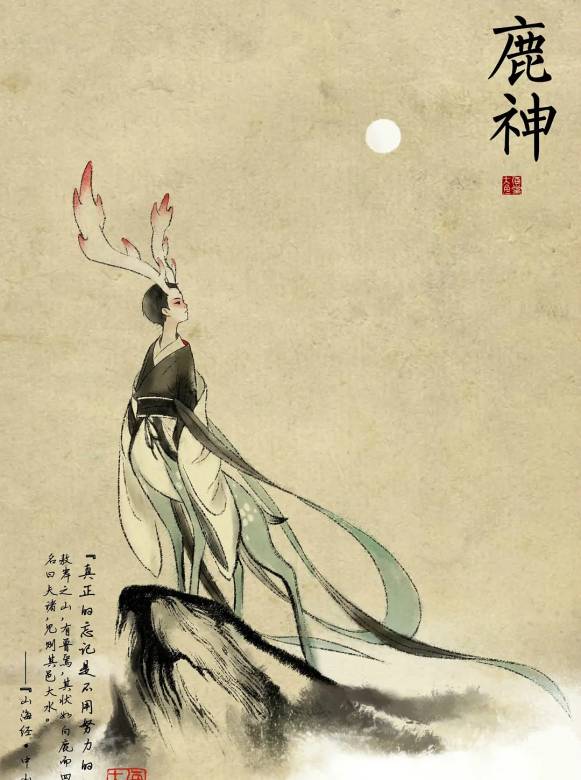 出自《山海经》原型是夫诸,白鹿而有四角,看似温柔洁净,它一出现,其地必定是大水时期。《山海经·中山经》:“中次三经萯山之首,曰敖岸之山,其阳多王雩琈之玉,其阴多赭、黄金。神熏池居之。是常出美玉。北望河林,其状如蒨如举。有兽焉,其状如白鹿而四角,名曰夫诸,见则其邑大水。”